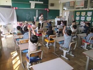 教室では、学校の決まりを確認したり、前学年の復習をしたり、