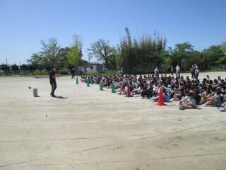 埼玉県警のあおぞらチームが来校し、防犯教室を行いました。