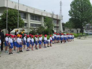 今日はハンドサインや並び方、服装を確認し、コスモス体操です。