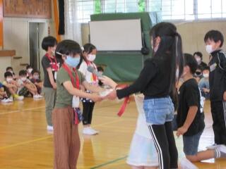 2年生からあさがおのたね、3年生から校歌の歌詞カードが