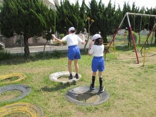 鉄棒で大きく足を振ってとんでいたのは3年生。
