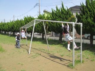 鉄棒にぶら下がったり、ブランコに乗ったり、登り棒をつかんだり(?)、楽しそうでした。