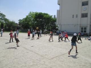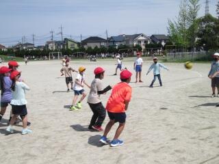 天気もよく、おにごっこやドッジボールなどで楽しそうに遊んでいました。