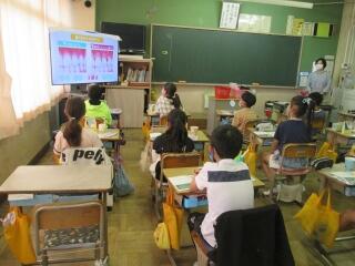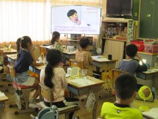 動画を見ながら、歯ブラシとデンタルフロスで歯みがきの練習をしました。