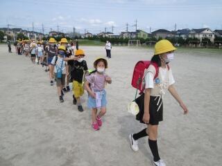 梅雨の晴れ間、心地よい風がふく中での一斉下校でした。