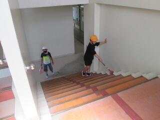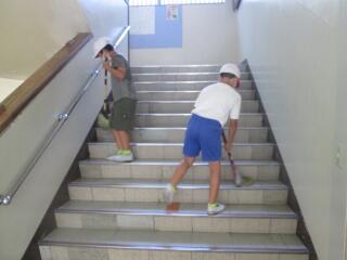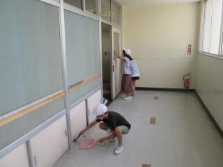 掃除の時間の様子です。黙々と学校をきれいにしています。