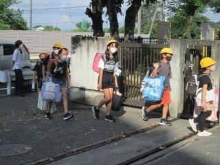 「ただいま~!」林間学校から無事に学校に戻りました。