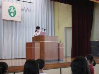始業式では、4年生代表児童から2学期の抱負の発表がありました。