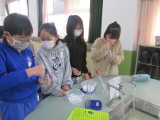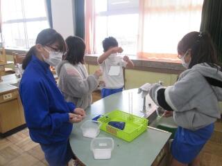 食塩やミョウバンを水にとかし、溶けかたを調べます。