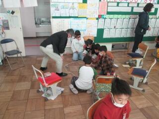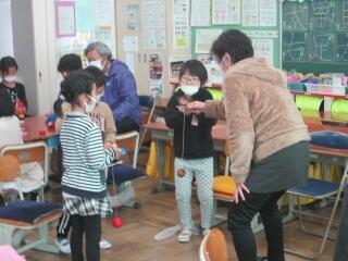 学校運営協議会の委員の方とともに、昔遊びを楽しみました。