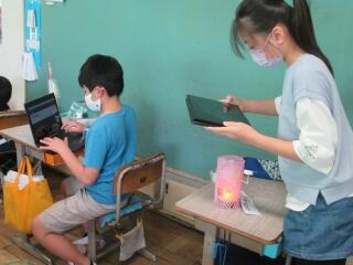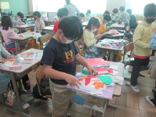 図工の作品を仕上げたり、出来上がった作品を写真に撮って紹介したり。