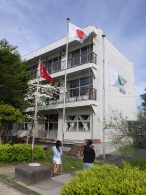 毎日、6年生の当番の児童が3つの旗をあげてくれます。