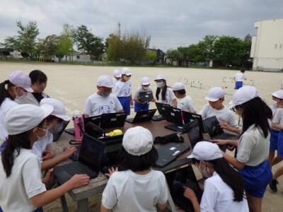 短い休み時間、久しぶりに校庭で遊ぶ子どもたちです。
