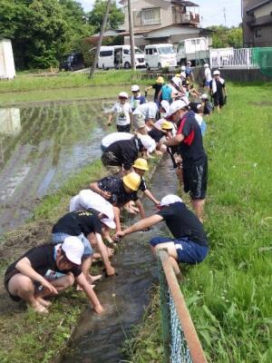 地域の方のご厚意により、毎年赤沼上手集会所そばの水田で田植えを体験させていただいています。