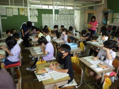 5年生は社会科の産業学習でも米づくりについて学びます。