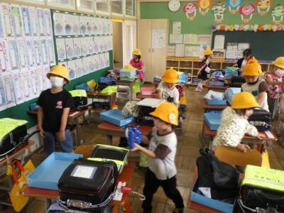 登校後、ランドセルの中身を移し替えると早速AIドリルにとりかかります。