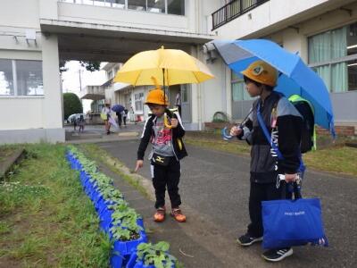 学校近くの田んぼでは、早くも田植えが終わっていました。