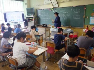 算数の時間は少人数指導で、きめ細やかな指導を行っています。