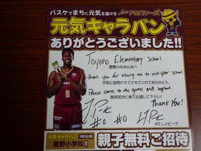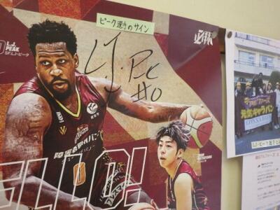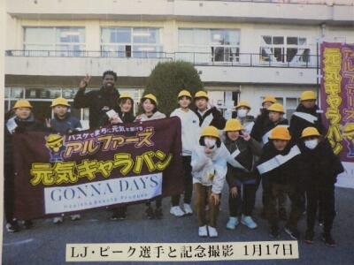 1月17日に、越谷アルファーズ(プロバスケットボールチーム)のスター選手であるLJ・ピーク選手が来校し、あいさつ運動に参加してくれました。