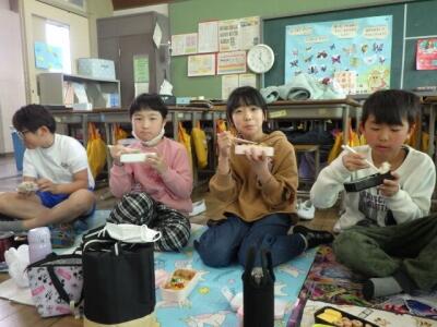先生たちもお弁当を食べ始めました。みかんを持参した先生もいます。