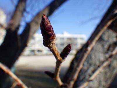 令和5年3月23日。1年前は、すでに正門の桜が開花していました。