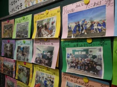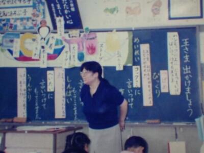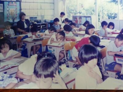 当時はまだ学校にパソコンはなく、黒板の掲示物はすべて先生の手書きでした。