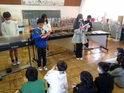 グループごとに「茶色の小びん」を演奏発表をしました。