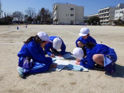 1年生はチームごとに「宝運び鬼」の作戦会議です。