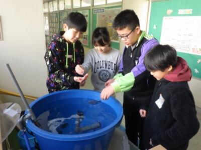 ヒラメの世話をしているうちに、5年生の身長も伸びてきました。
