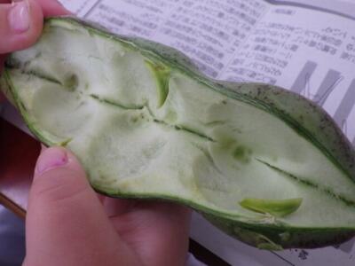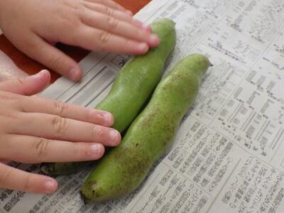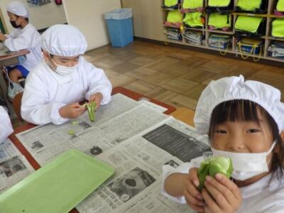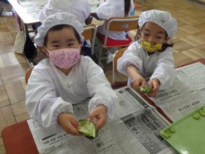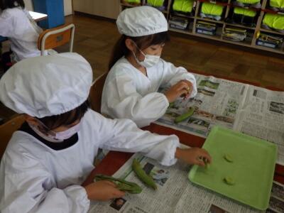 このそら豆は、今日の給食の「豆腐のうま煮」の中で使われます。