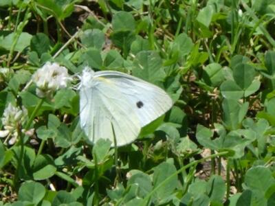 「ポン」という音に誘われてモンシロチョウも飛び始めました。