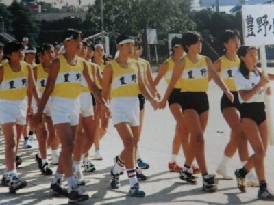 当時の陸上選手のユニフォームには、平仮名で「とよの」の文字がありました。