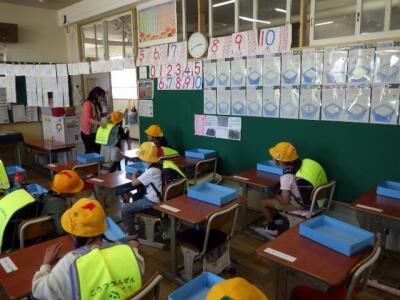帰りの会で、引き渡し訓練の方法について確認しました。