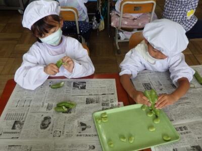 このそら豆は、今日の給食の「豆腐のうま煮」の中で使われます。