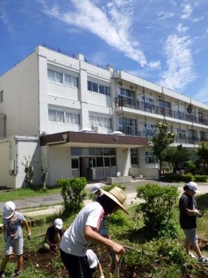 プールの周りのそうじや草とりも行いました。