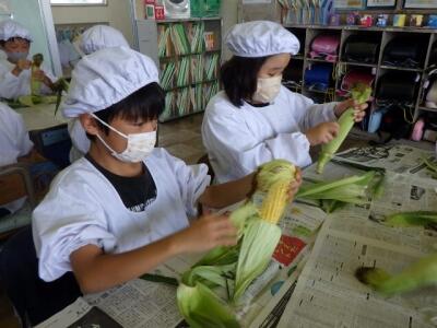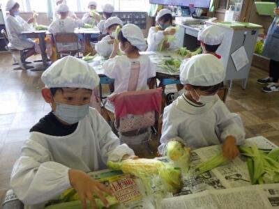 これからとうもろこしの皮むき体験が始まります。