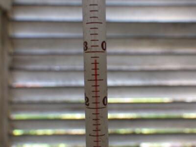 百葉箱の温度計は36℃を指していました。