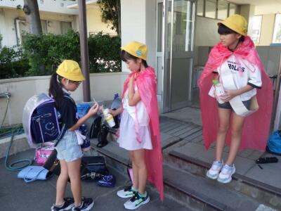子どもたちが昇降口から出てきました。