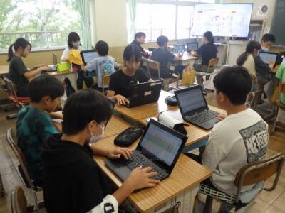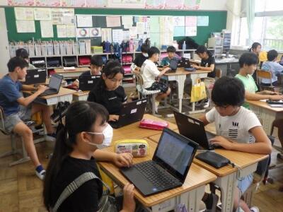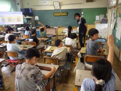 前の写真から約1年後、令和2年7月29日の4年生の授業の様子です。