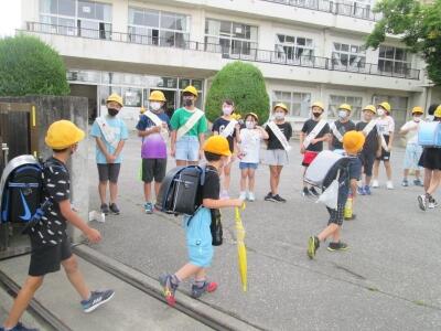みんな笑顔であいさつをしながら下校していきます。