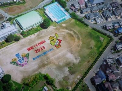 これは1年前、開校150周年を記念して撮影した航空写真です。