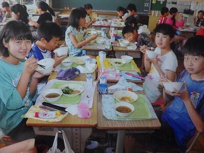 和やかな給食の雰囲気が伝わっています。