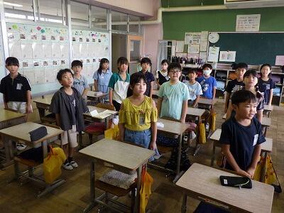 校長先生のお話の後、4年生代表児童が言葉を述べました、