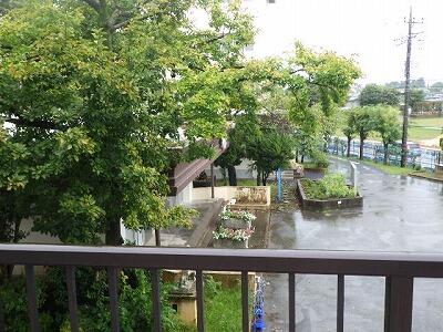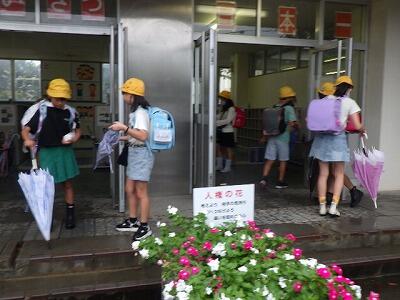 明け方には激しい雨が降っていましたが、登校時には弱まりました。