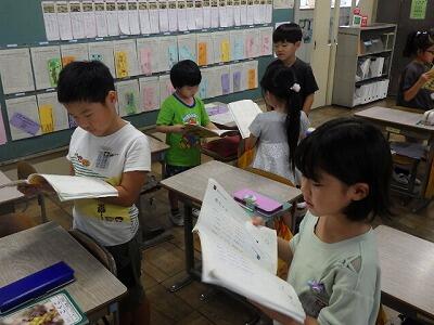 2年生の教室では「雨のうた」という詩を読んでいました。