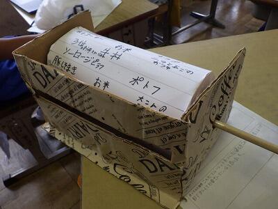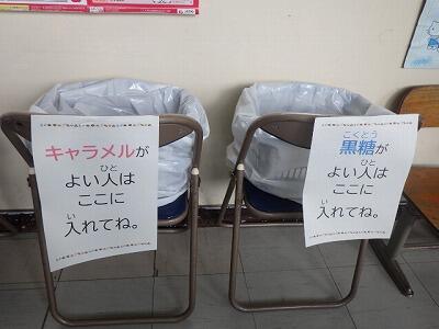 ペットボトルキャップの投票で、9月30日の給食の二色あげパンの味を決めてもらいます。