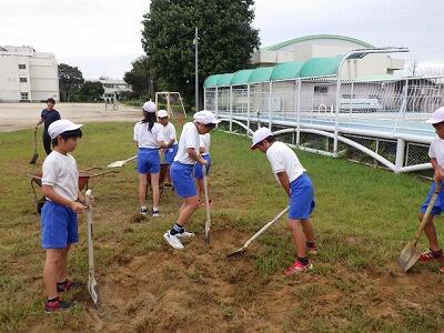 園芸委員と運動委員の児童が運動会に向けて作業を行いました。