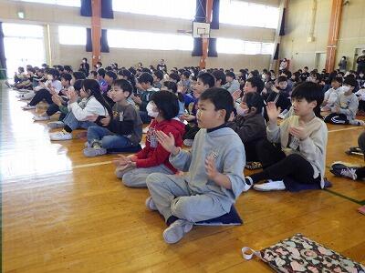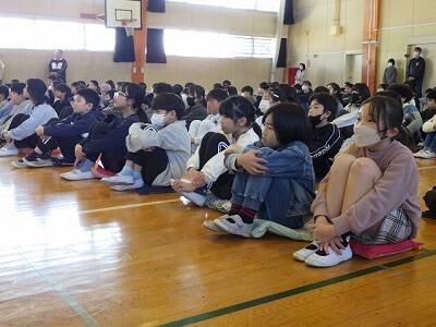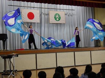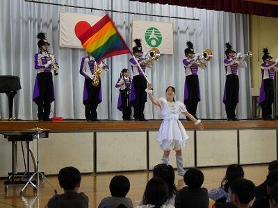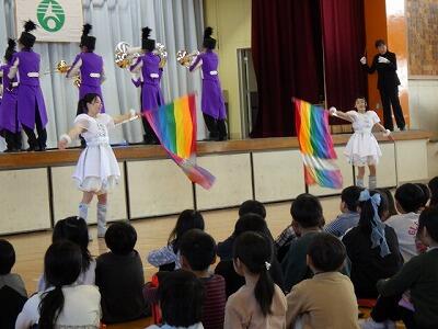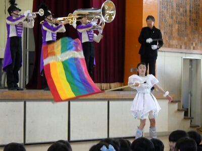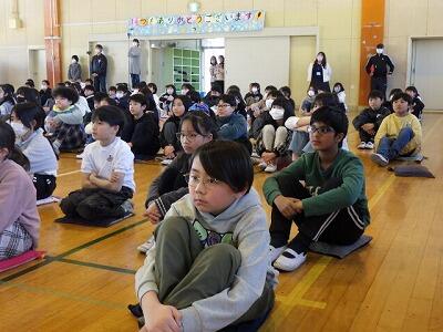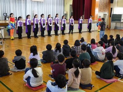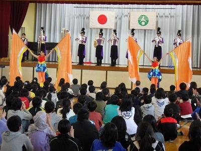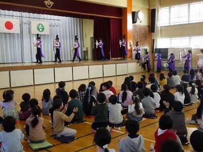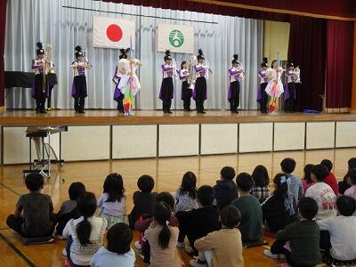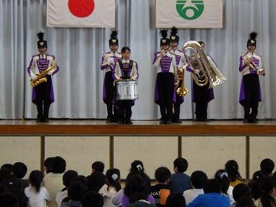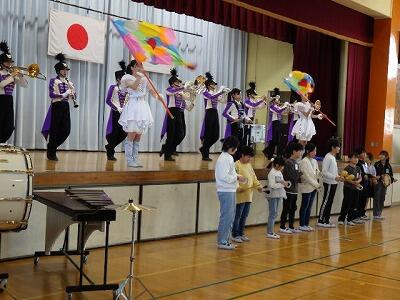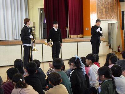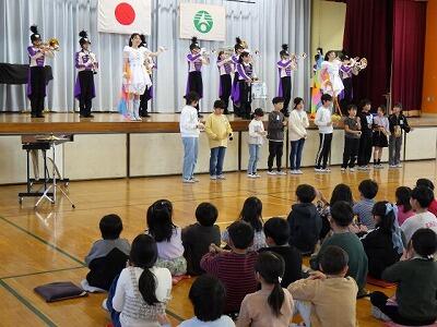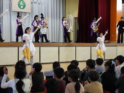 豊野中吹奏楽部の皆さんが、豊野小学校にやってきました。