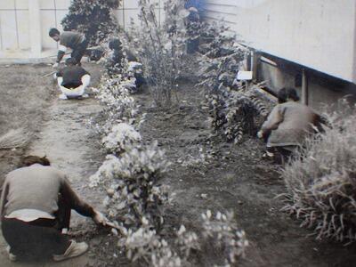 みんなで草取りをしています。
