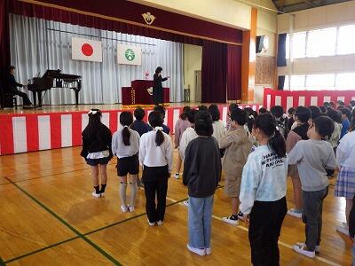 校長先生のお話の後、校歌を斉唱しました。